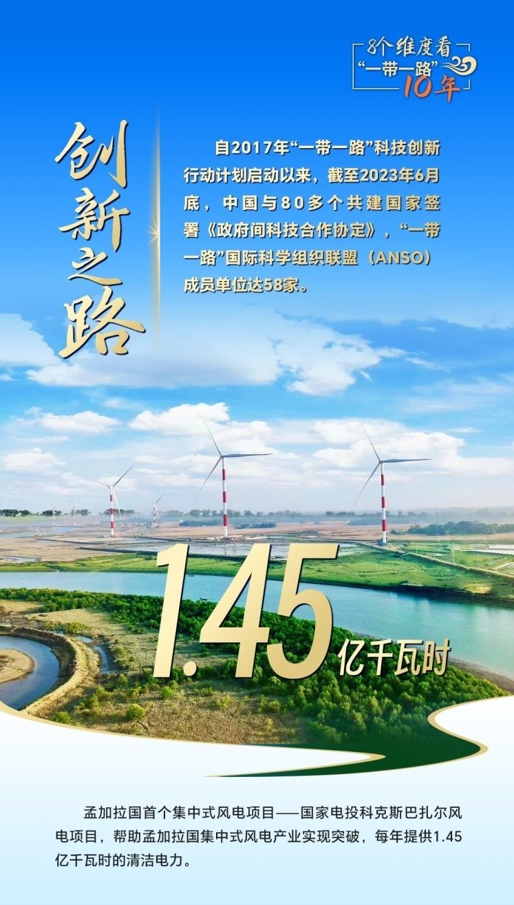 10年來,創(chuàng)新始終是一個關鍵詞,中國與共建國家加強科技創(chuàng)新合作,加速集聚創(chuàng)新資源,為共建“一帶一路”注入強勁動力。截至2023年6月底,中國與80多個共建國家簽署《政府間科技合作協(xié)定》,“一帶一路”國際科學組織聯(lián)盟(ANSO)成員單位達58家;2013年以來,中國支持逾萬名共建國家青年科學家來華開展短期科研工作和交流,累計培訓共建國家技術和管理人員1.6萬余人次;累計幫助50多個非洲國家建成20多個農業(yè)技術示范中心,在農業(yè)、新能源、衛(wèi)生健康等領域啟動建設50余家“一帶一路”聯(lián)合實驗室。