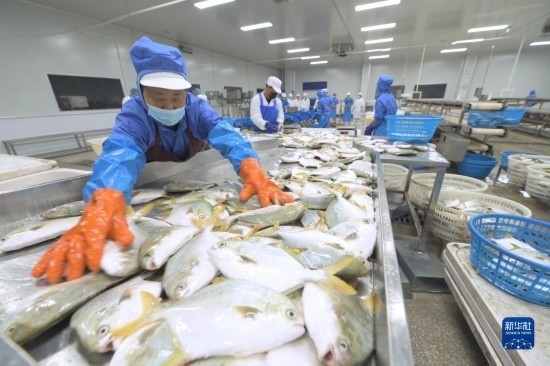 10月17日,位于中印尼“兩國雙園”的福建淼天匯食品有限公司員工在整理準備出口到印尼的魚產(chǎn)品。