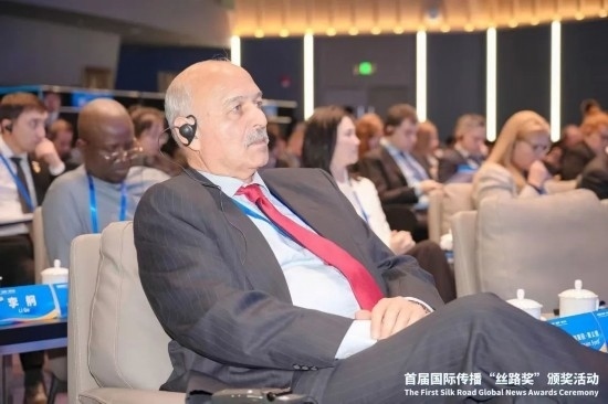 穆沙希德10月19日參加2023“一帶一路”媒體合作論壇并代表國際傳播“絲路獎”獲獎者發(fā)言。