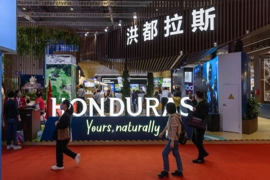 11月7日在進(jìn)博會(huì)國(guó)家館拍攝的洪都拉斯展臺(tái)。新華社記者 王翔 攝