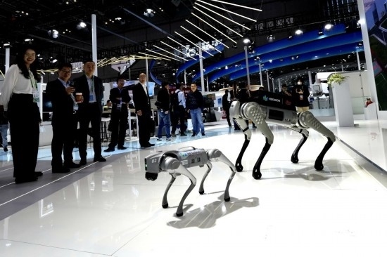 11月7日,在第六屆進博會技術裝備展區(qū),觀眾在觀看海克斯康展示的智能機器狗。