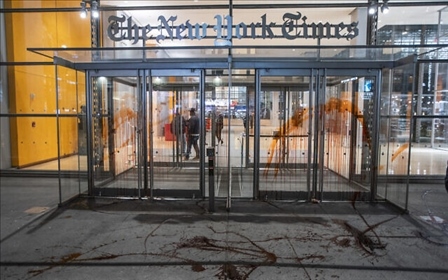 另據(jù)《以色列時報》報道,還有示威者在《紐約時報》總部大樓外集會并在大樓入口處潑上紅色顏料,這些示威者認為《紐約時報》關(guān)于巴以新一輪沖突的報道偏袒以色列。