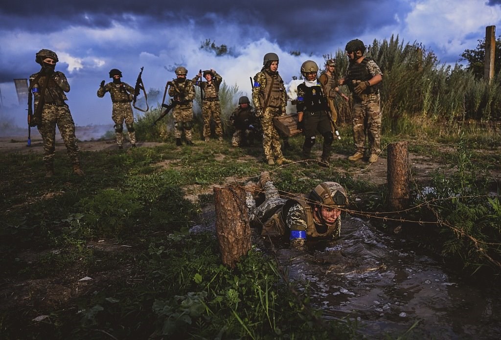 當(dāng)?shù)貢r(shí)間2023年7月15日,扎波羅熱地區(qū),烏克蘭女兵在不同的戰(zhàn)斗場(chǎng)景中進(jìn)行訓(xùn)練。