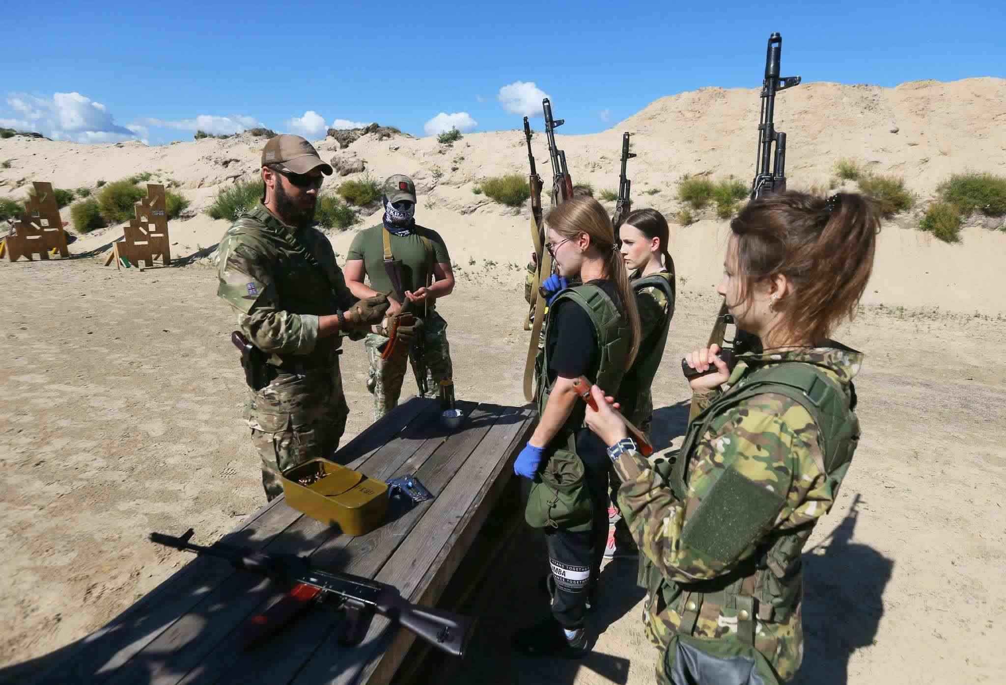 當(dāng)?shù)貢r(shí)間2023年7月12日,烏克蘭基輔,烏克蘭女兵學(xué)習(xí)使用槍械。