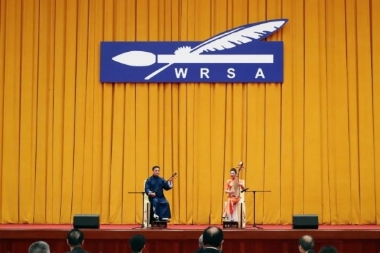 聯(lián)誼會現(xiàn)場,中央民族歌舞團(tuán),浙江小百花越劇院、蘇州市評彈團(tuán)的藝術(shù)家們?yōu)樵趫黾钨e奉上了民族器樂合奏《五色風(fēng)情》、越劇《十八相送》、評彈《姑蘇好風(fēng)光》、歌舞劇《同心共圓中國夢》等文藝節(jié)目,為中外嘉賓帶來一場別具特色的視聽盛宴。