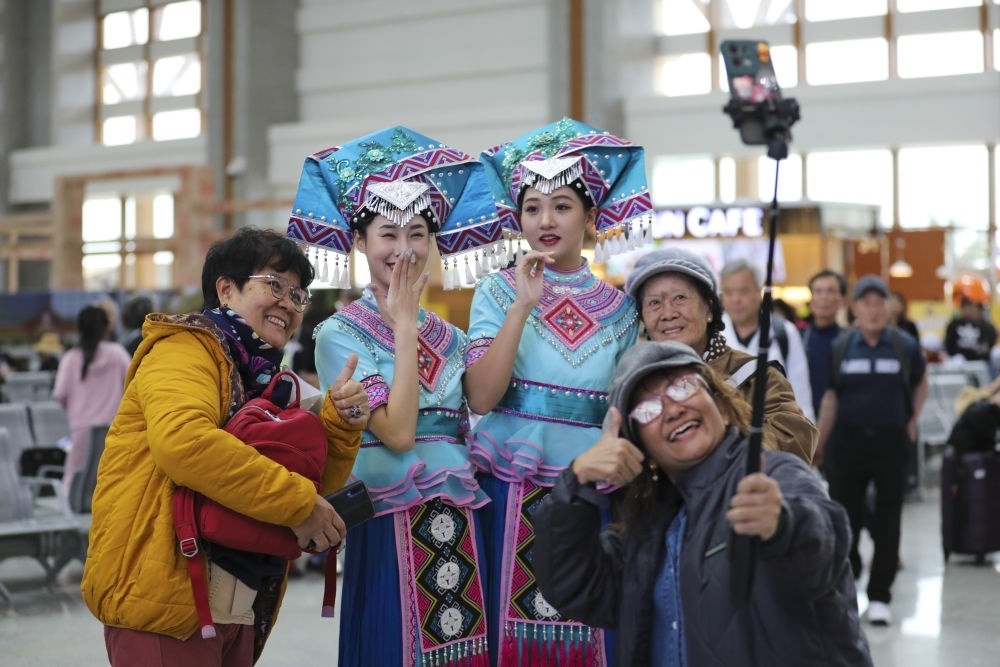 和謝先生一樣乘動車跨境旅行的還有來自四川、湖南等地的300多名游客。