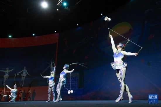 2月24日,演員在荷蘭海牙舉行的“四海同春”慰僑訪演活動上表演雜技。新華社記者 孟鼎博 攝