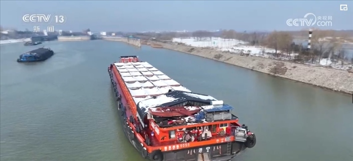 除了散裝船外,現(xiàn)在集裝箱船也逐漸多了起來。船民史優(yōu)現(xiàn)在駕駛的就是一艘集裝箱船,在此之前他駕駛的是一艘散裝船。變化源于2023年京杭運河棗莊段對航道進行升級改造后航道變寬、變深,原來常年無法通行的2000噸級船舶也可以自由通行了。