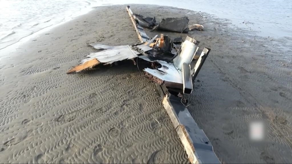 這張2月20日的視頻截圖顯示的是,疑似被胡塞武裝擊落的美國MQ-9無人機(jī)殘骸墜落到也門紅海城市荷臺(tái)達(dá)的一處海灘上。新華社發(fā)