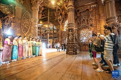 3月29日,游客在泰國芭堤雅真理圣殿游覽。新華社記者 王騰 攝