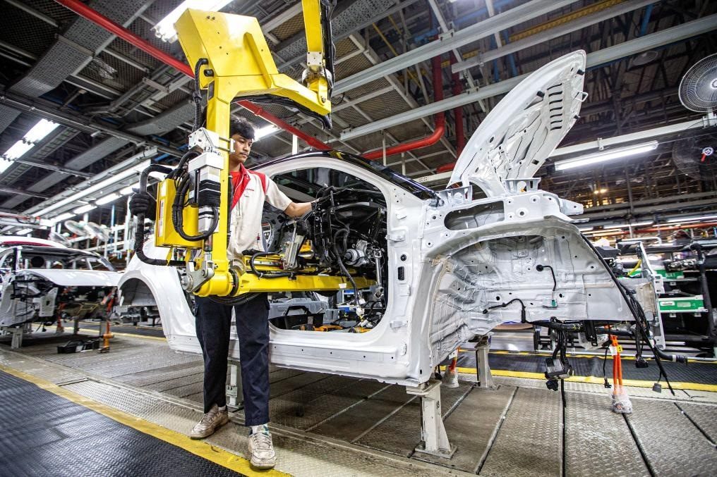 ?1月12日,工人在位于泰國(guó)羅勇的長(zhǎng)城新能源汽車制造基地生產(chǎn)車間內(nèi)工作。(圖/新華社)
