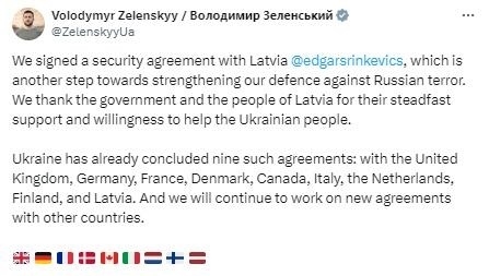 同日早些時(shí)候,澤連斯基在另一條貼文中宣布,烏克蘭已經(jīng)與英國、德國、法國、丹麥、加拿大、意大利、荷蘭、芬蘭和拉脫維亞簽署了雙邊安全協(xié)議。他還稱,“烏克蘭將繼續(xù)努力與其他國家達(dá)成新協(xié)議?!?/p>