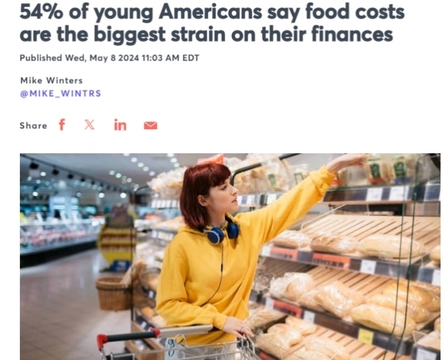 考慮到食品價(jià)格在過去四年里上漲了25%,而消費(fèi)者價(jià)格指數(shù)(cpi)追蹤的所有商品的漲幅為21%,因此食品價(jià)格對(duì)年輕人的沖擊最大或許并不奇怪。