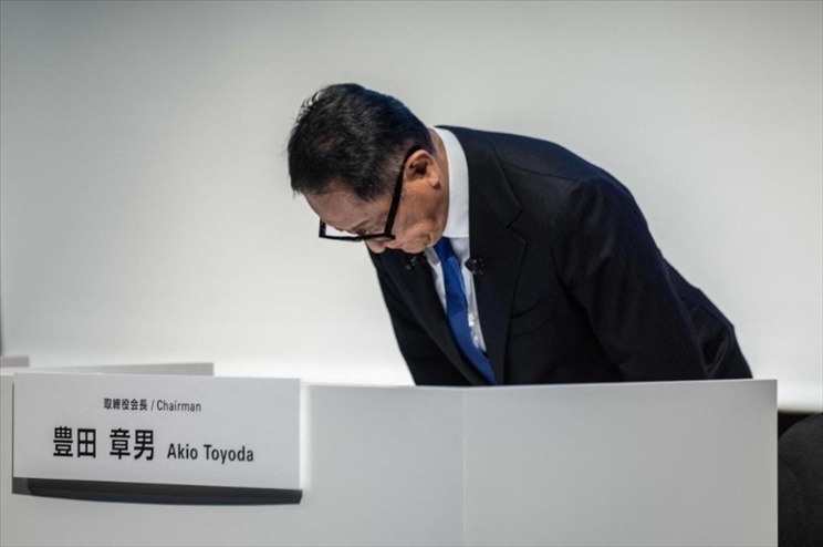 ?6月3日,豐田汽車公司會長(董事長)豐田章男在東京召開的記者會上鞠躬道歉。新華社/法新