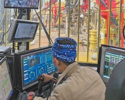 通過參與艾伯特湖區(qū)油田建設,東方宏華還研發(fā)出“一鍵聯(lián)動”舉升式排管系統(tǒng),以舉升移運、多系統(tǒng)協(xié)同、離線作業(yè)、智能感知、一鍵集控五大技術為核心,實現(xiàn)在地面、臺面和高空三大區(qū)域的自動化作業(yè)?!坝辛宋覀冏灾餮邪l(fā)的智能系統(tǒng)加持,操作人員只需點擊屏幕,就可以完成接立柱和鉆井等操作?!睎|方宏華所屬宏華電氣副總經(jīng)理汪虹宇介紹。
