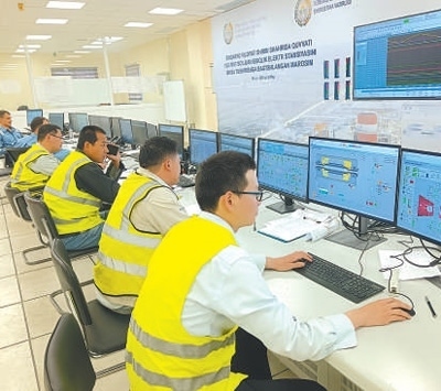 工作人員在錫爾河1500兆瓦燃氣聯(lián)合循環(huán)電站集控室監(jiān)控各設備工作狀態(tài)。李耀德攝