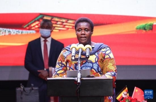 9月25日,烏干達(dá)副總統(tǒng)杰西卡·阿盧波在坎帕拉舉行的慶祝中華人民共和國成立75周年招待會(huì)上致辭。新華社發(fā)(阿佳拉·納瓦達(dá)攝)