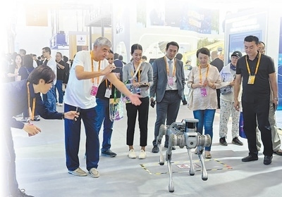 在服貿會現(xiàn)場,智能機器狗吸引很多關注。本報記者 劉玲玲攝