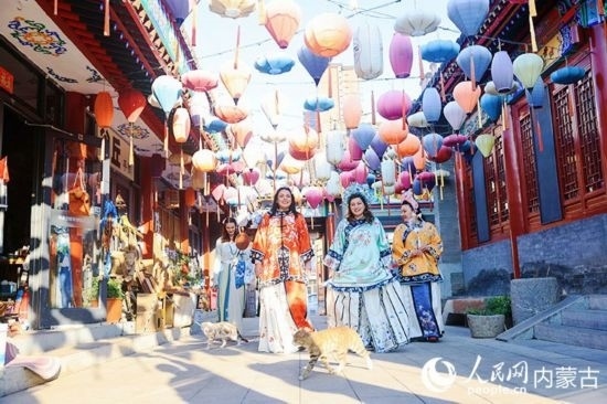大盛魁博物館整體建筑風(fēng)格為清末民國(guó)至上世紀(jì)40年代歸化城(今呼和浩特市)街區(qū)風(fēng)貌。外媒記者“小姐姐”們現(xiàn)場(chǎng)“換裝”,體驗(yàn)各式中華傳統(tǒng)服飾。來(lái)自巴勒斯坦國(guó)家電視臺(tái)的主持人拉尼婭·哈姆達(dá)拉,換了一身鮮艷的橘色服飾,行走園中,宛若“穿越”時(shí)光。