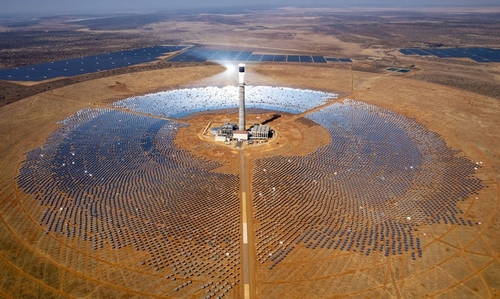 這是2024年8月20日在南非北開普省拍攝的南非紅石100兆瓦塔式熔鹽光熱電站項(xiàng)目(無人機(jī)照片)。由中國電建集團(tuán)山東電建三公司承建的南非紅石100兆瓦塔式熔鹽光熱電站項(xiàng)目是撒哈拉以南非洲首個(gè)塔式熔鹽光熱電站項(xiàng)目,也是南非最大可再生能源投資項(xiàng)目之一。新華社記者 張譽(yù)東 攝