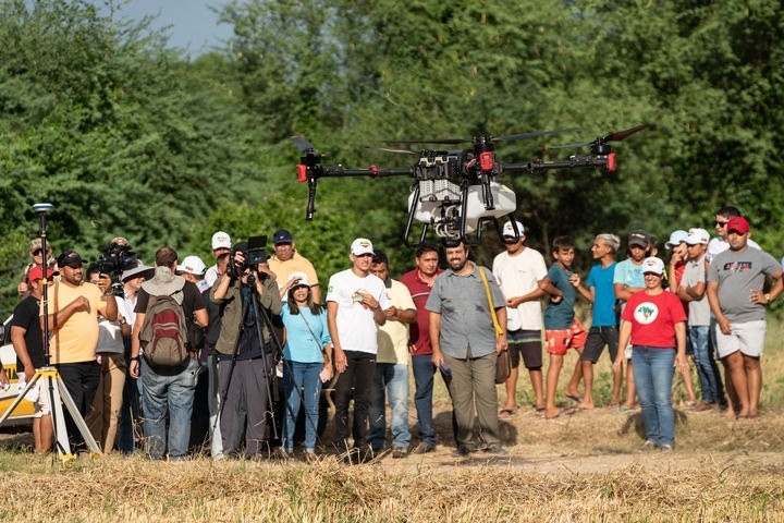 2024年2月2日,在巴西阿波迪,人們觀看一款中國生產(chǎn)的農(nóng)用無人機(jī)。當(dāng)日,中巴農(nóng)業(yè)機(jī)械化合作示范項(xiàng)目啟動(dòng)儀式在巴西阿波迪舉行,第一批來自中國7家農(nóng)機(jī)企業(yè)共31臺(tái)(件)設(shè)備正式交付給巴西農(nóng)村勞動(dòng)者組織。新華社記者 王天聰 攝