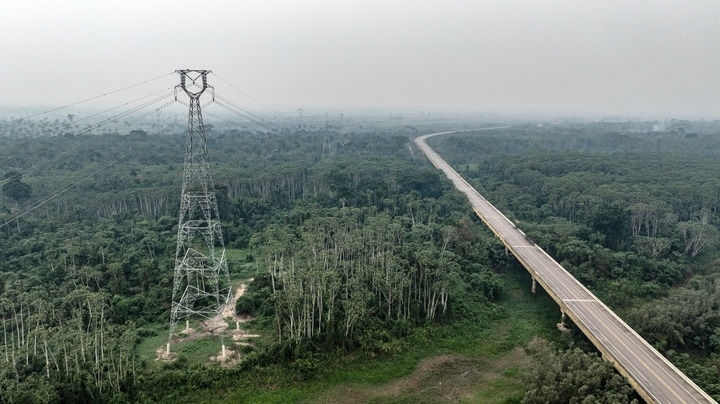這張2024年9月13日拍攝的照片顯示,在巴西朗多尼亞州,EDP輸變電項(xiàng)目線路穿越熱帶雨林(無人機(jī)照片)。巴西EDP輸變電項(xiàng)目是位于巴西北部的阿克里州和朗多尼亞州的綠地輸變電工程,山東電建一公司承擔(dān)了該項(xiàng)目的EPC總承包任務(wù)。項(xiàng)目全面完成后,將極大提升當(dāng)?shù)仉娋W(wǎng)的輸電能力,增強(qiáng)電力供應(yīng)的可靠性和穩(wěn)定性,對(duì)巴西北部地區(qū)的可持續(xù)發(fā)展和經(jīng)濟(jì)增長具有重要意義。新華社記者 王天聰 攝