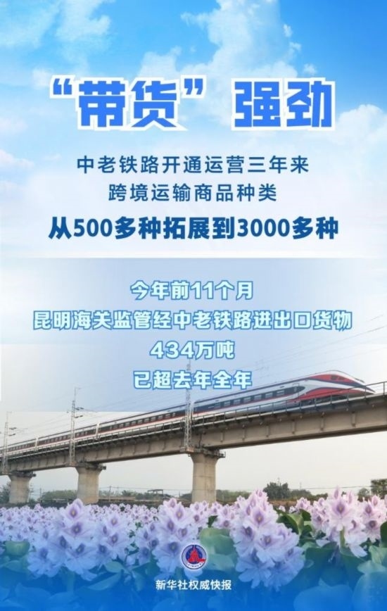 昆明海關(guān)監(jiān)管經(jīng)中老鐵路進(jìn)出口貨物超1060萬(wàn)噸