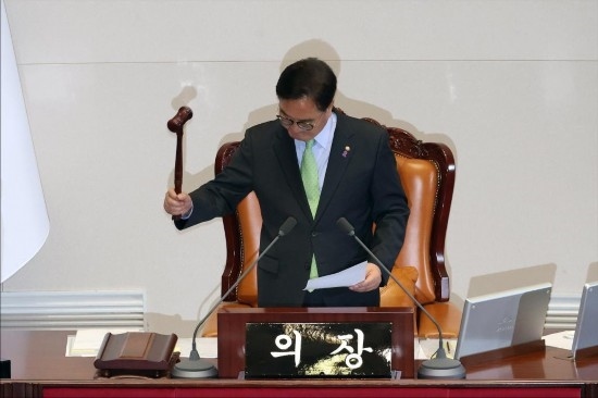 最終,在7日下午的國會(huì)全體會(huì)議上,絕大多數(shù)執(zhí)政黨議員先是對涉總統(tǒng)夫人的“金建希特檢法”投下反對票將其否決,隨后紛紛退場,拒絕參加接下來的總統(tǒng)彈劾動(dòng)議案表決,導(dǎo)致該動(dòng)議案因投票人數(shù)不足未獲通過。