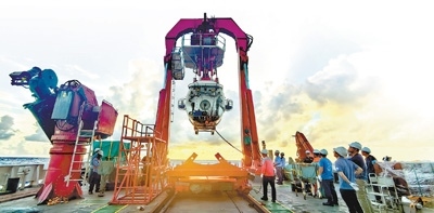 船時6時許(北京時間4時許),遠(yuǎn)處天際依然泛著青灰色,母船“深海一號”船上已是一片繁忙景象。作業(yè)區(qū)天氣晴朗,潛航人員和技術(shù)保障團(tuán)隊(duì)各司其職。一系列準(zhǔn)備工作就緒后,“蛟龍”號艙蓋關(guān)閉,深海之旅即將開啟。