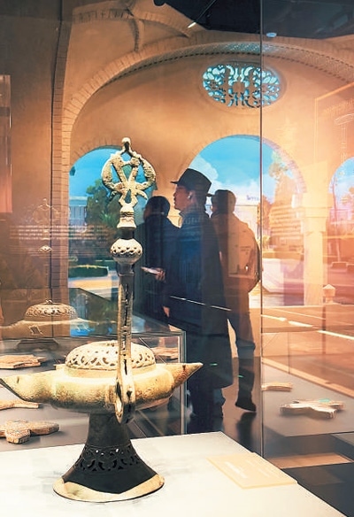 伊朗古稱波斯,是有著數(shù)千年歷史的文明古國。亞歐非多民族文化在此交匯融合,仿佛群星點(diǎn)亮的夜空,璀璨奪目。此次展覽分為“光明信仰與波斯生活”“交流融匯·波斯陶瓷記憶”“群星薈聚·伊朗金屬器藝術(shù)”“剔透耀彩·波斯玻璃器”“錦繡華彩·波斯錦與地毯”五部分,從多個(gè)角度向觀眾展示波斯文明之美及其與中華文明的交流互鑒。