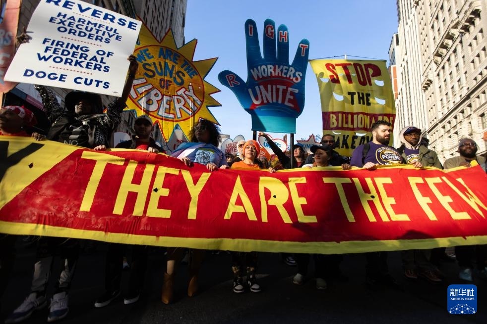 新華社紐約5月1日電(記者劉亞南)美國多地民眾5月1日舉行大規(guī)模游行集會(huì),抗議特朗普政府在經(jīng)濟(jì)、移民、教育、稅收等多方面的政策。