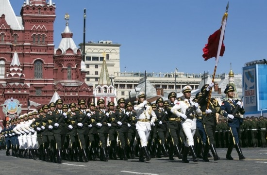 4月24日,被譽(yù)為“中國(guó)排面”的中國(guó)人民解放軍儀仗司禮大隊(duì)119名隊(duì)員抵達(dá)莫斯科,為參加5月9日紅場(chǎng)閱兵進(jìn)行準(zhǔn)備訓(xùn)練。5月7日,他們參加了日間總彩排。
