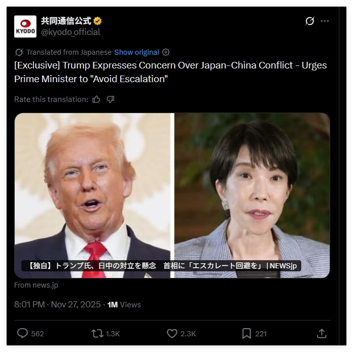 不過,盡管日本政府否認(rèn),包括路透社在內(nèi)的更多西方媒體,卻陸續(xù)通過其他信源印證了特朗普讓高市早苗不要刺激中國的情況。就連日本共同社也在報道中提及此事——當(dāng)然,共同社同樣遭到了日本右翼分子的圍攻。
