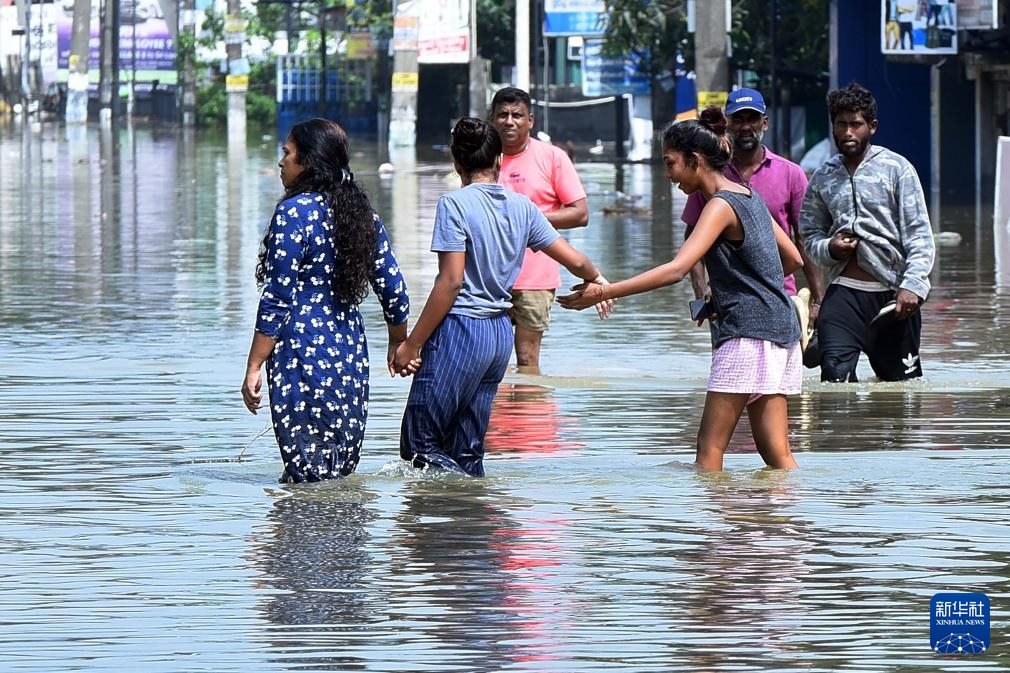 12月1日,在斯里蘭卡首都科倫坡郊區(qū),救援人員將受洪澇影響的民眾轉(zhuǎn)移至安全地點。新華社發(fā)(加揚·薩米拉攝)