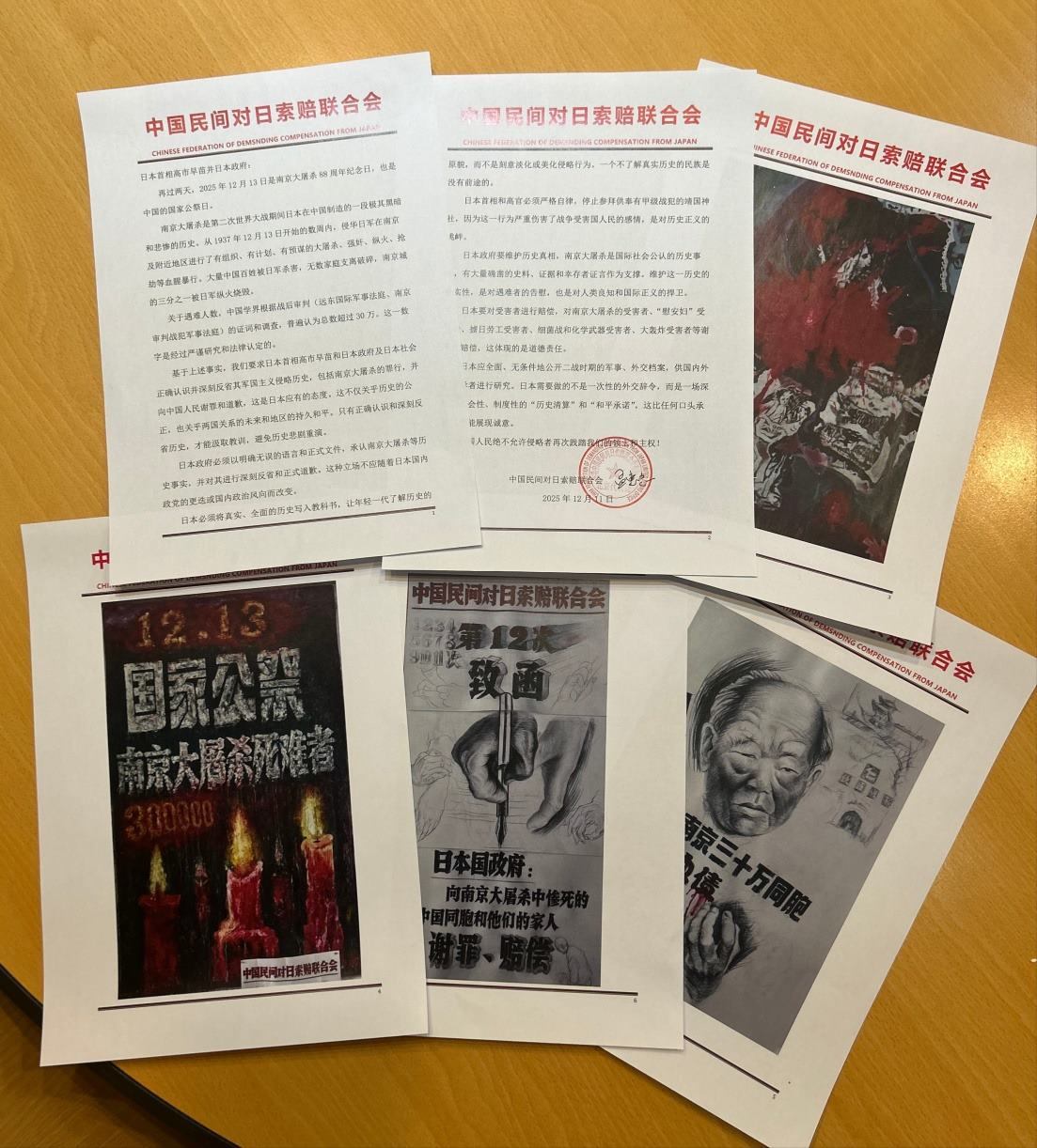 南京大屠殺88周年之際,中國民間對(duì)日索賠聯(lián)合會(huì)通過日本駐華大使館,致信日本政府及首相高市早苗,要求就南京大屠殺的罪行向中國人民謝罪并賠償。