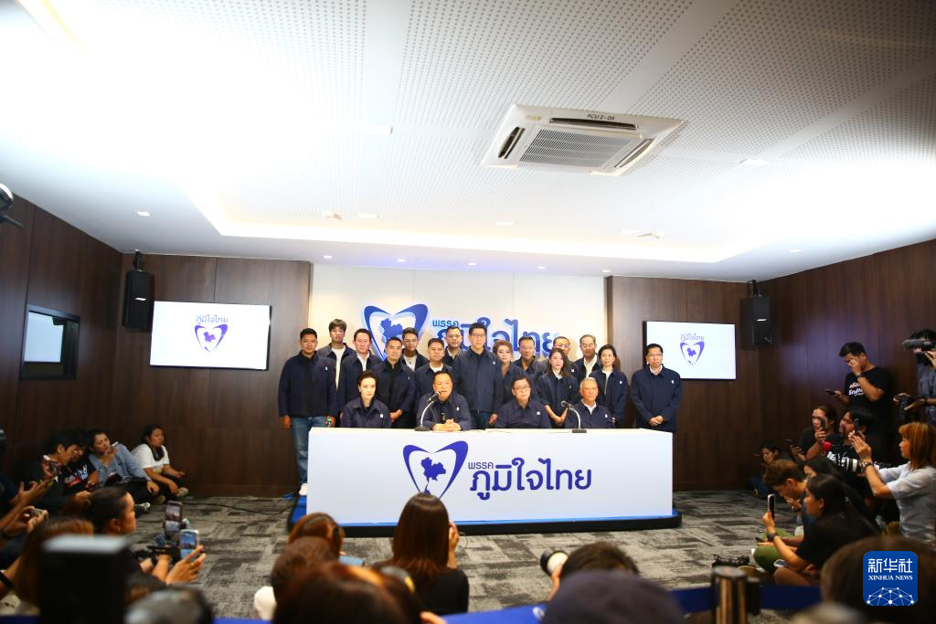 2月8日,泰國(guó)看守政府總理、自豪泰黨黨首阿努廷(前左二)在曼谷出席新聞發(fā)布會(huì)。新華社記者 萬(wàn)后德 攝