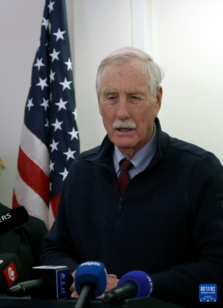 2月9日,在丹麥自治領(lǐng)地格陵蘭島首府努克,美國緬因州獨(dú)立參議員安格斯·金出席新聞發(fā)布會。新華社記者 李穎 攝