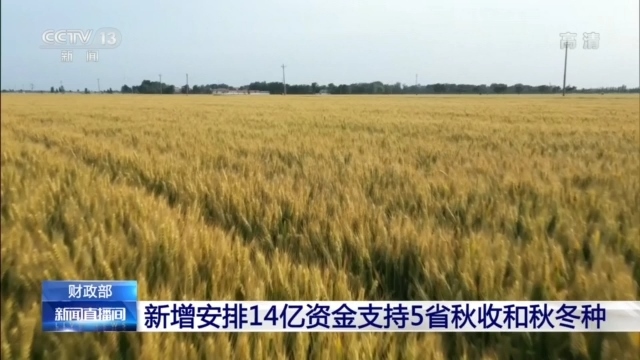 財政部一次性新增安排14億元 支持5省秋收和秋冬種