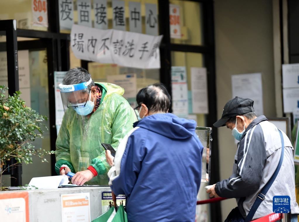 2月22日,在香港佐敦疫苗接種中心站,市民佩戴口罩排隊(duì)接種疫苗。新華社記者 盧炳輝 攝