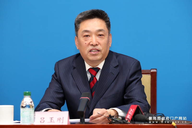 教育部基礎(chǔ)教育司司長呂玉剛介紹國家中小學(xué)智慧教育平臺(tái)建設(shè)與應(yīng)用有關(guān)工作情況。(中國教育報(bào)記者 張勁松/攝)