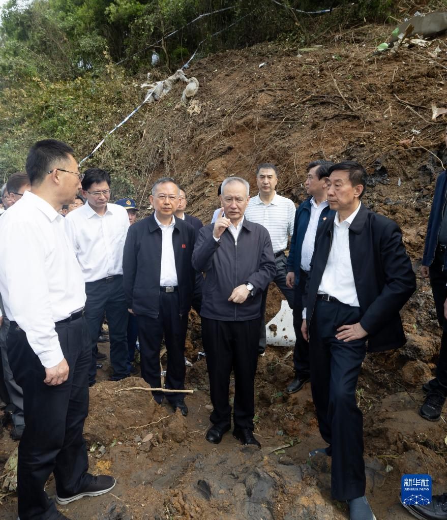 劉鶴王勇在廣西梧州指導(dǎo)“3·21”東航MU5735航空器飛行事故現(xiàn)場(chǎng)救援善后處置及事故原因調(diào)查工作