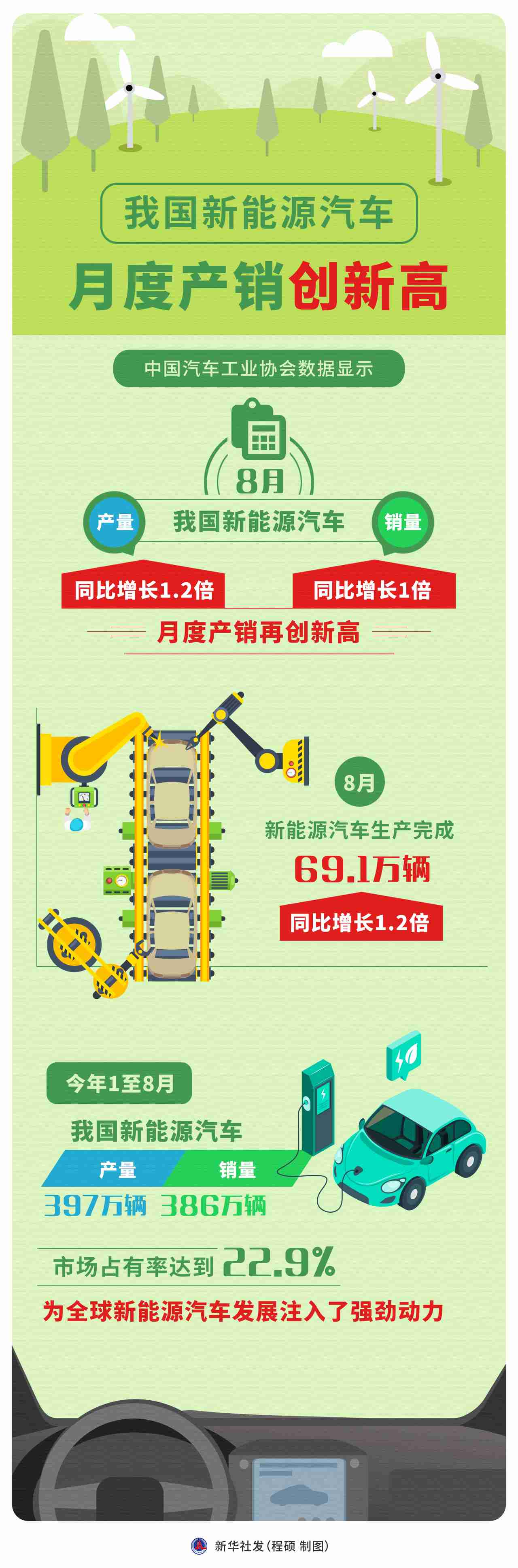 新華社北京9月15日電 題:月度產銷創(chuàng)新高,政策助力新能源汽車發(fā)展