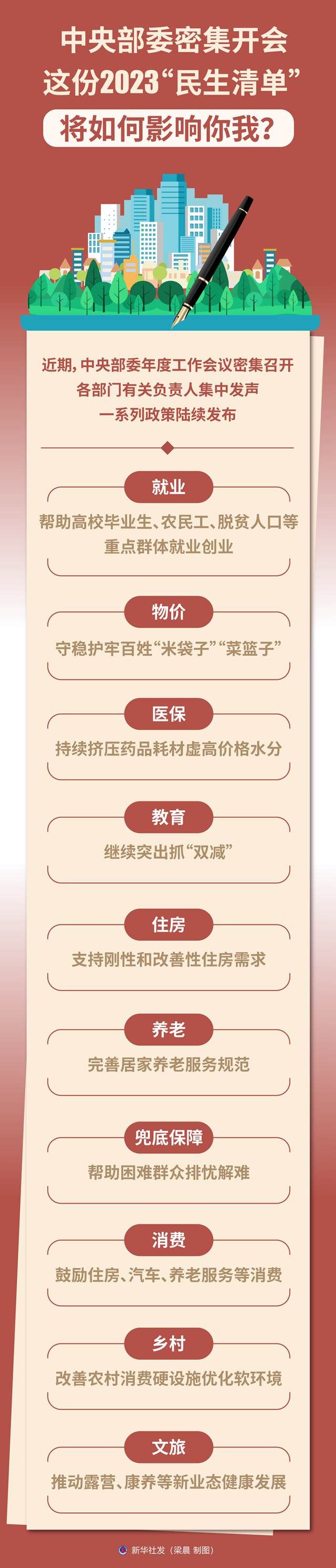 近期,中央部委年度工作會(huì)議密集召開,各部門有關(guān)負(fù)責(zé)人集中發(fā)聲,一系列政策陸續(xù)發(fā)布。“新華視點(diǎn)”記者梳理了多個(gè)領(lǐng)域2023年聚焦民生關(guān)切的重要舉措。