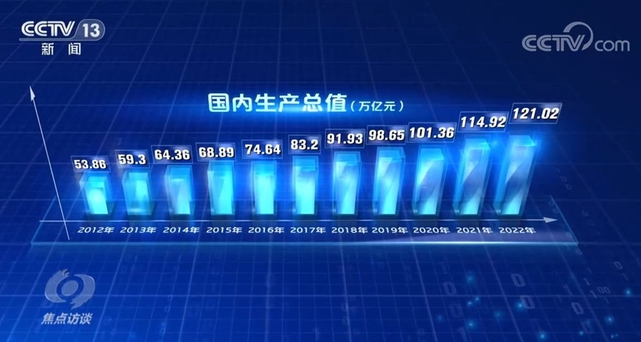 國家統(tǒng)計局局長康義:“這是繼2020年、2021年連續(xù)突破100萬億元、110萬億元之后,又躍上新的臺階。經(jīng)濟(jì)總量和人均水平持續(xù)提高,意味著我國的綜合國力、社會生產(chǎn)力、國際影響力、人民生活水平進(jìn)一步提升?!?/p>