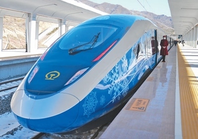 G9981次北京冬奧列車??吭诰埜哞F崇禮站。 新華社記者 鞠煥宗攝