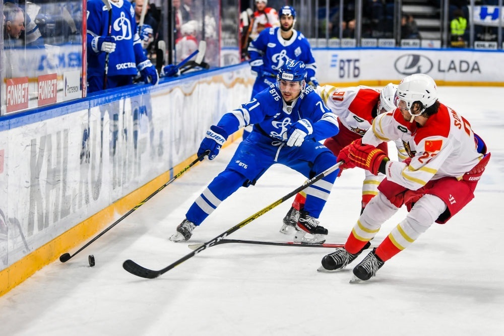 ↑2022年11月19日,中國北京昆侖鴻星隊(duì)(紅色)與俄羅斯莫斯科迪納摩隊(duì)在莫斯科舉行中俄體育交流年冰球友誼賽。兩國元首親自推動(dòng),延續(xù)互辦國家主題年的友好傳統(tǒng),繼“青年友好交流年”“媒體交流年”“地方合作交流年”“科技創(chuàng)新年”后,將2022年和2023年確定為“體育交流年”。