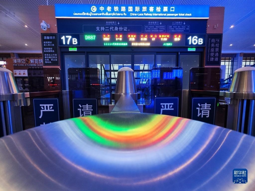 當(dāng)日,中老鐵路開(kāi)行國(guó)際旅客列車,昆明至萬(wàn)象間可實(shí)現(xiàn)乘火車當(dāng)日通達(dá)。新華社記者 邢廣利 攝