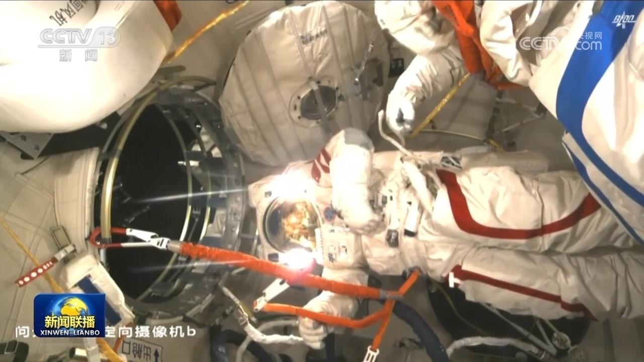 航天員費俊龍打開出艙艙門,成功出艙。