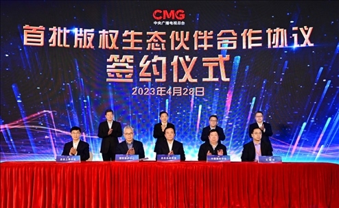 4月28日,以“共融共生 共創(chuàng)未來”為主題的中央廣播電視總臺首屆版權(quán)生態(tài)合作大會在上海舉行。中宣部副部長、中央廣播電視總臺臺長慎海雄,上海市委常委、宣傳部部長趙嘉鳴出席,并與中國版權(quán)協(xié)會理事長閻曉宏、總臺編務(wù)會議成員彭健明共同見證總臺首批版權(quán)生態(tài)伙伴簽約。