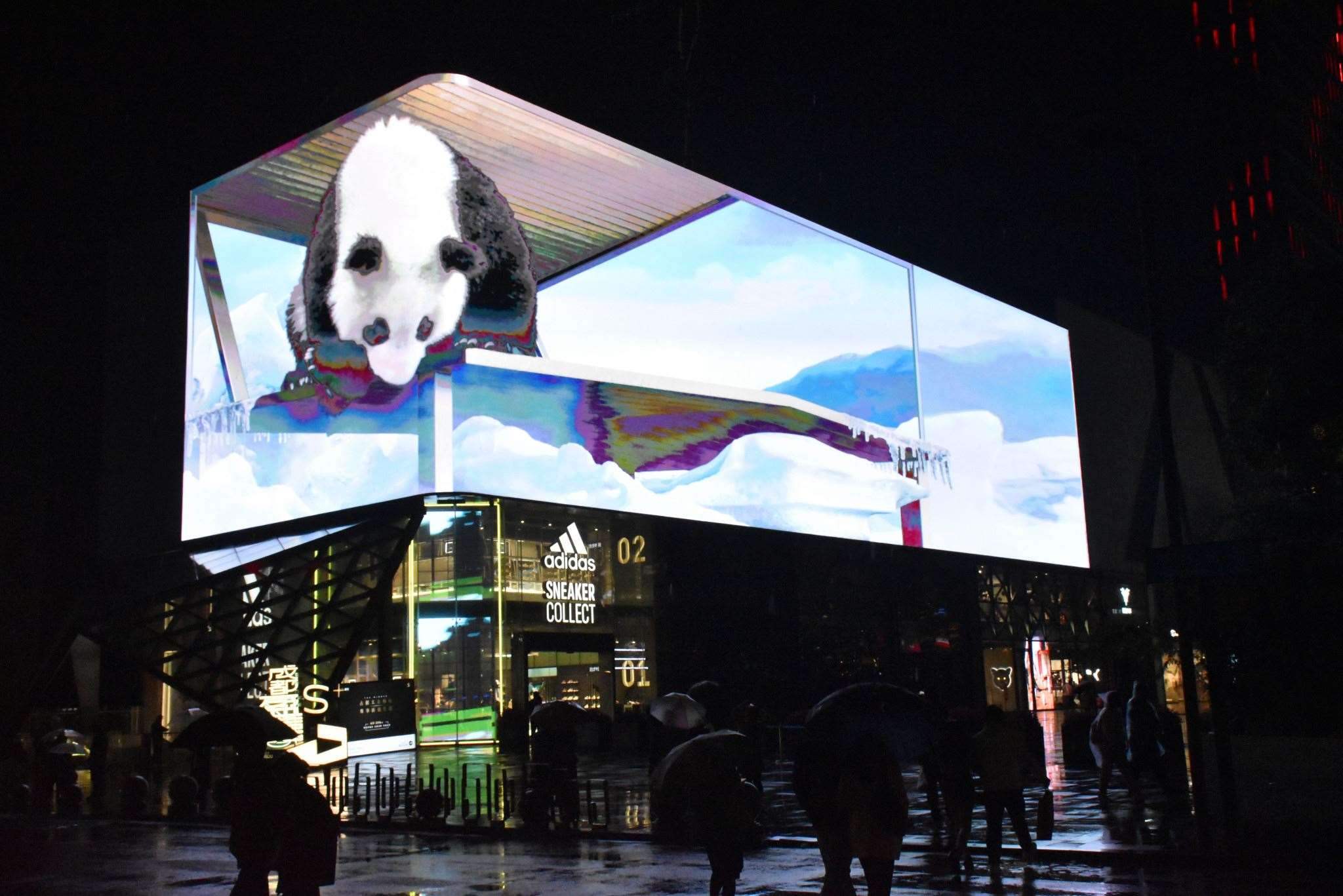 2023年4月24日,成都,太古里步行街的裸眼3D屏上,大熊貓萌態(tài)十足。視覺(jué)中國(guó)